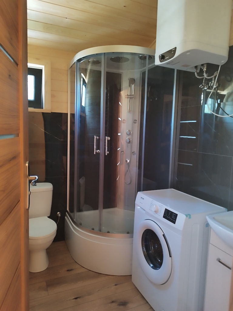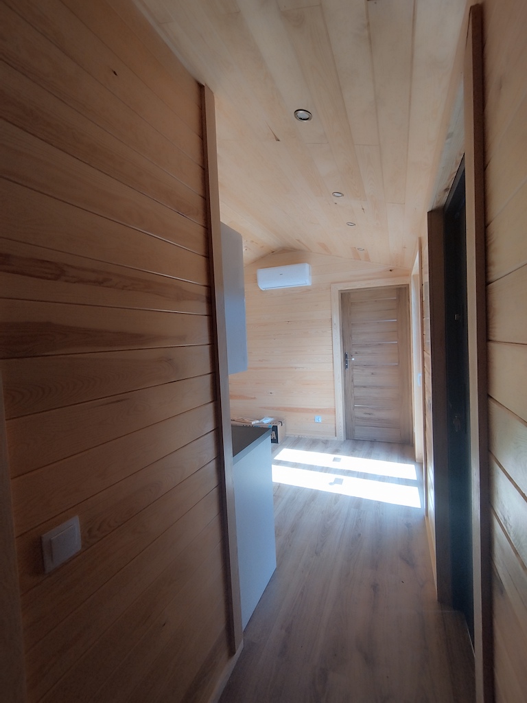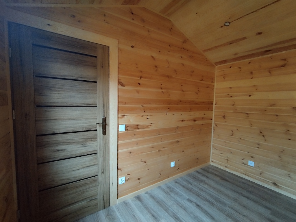 Przedmiotem sprzedaży jest domek mobilny całoroczny z wyposażeniem. Do produkcji domków używamy naturalnych materiałów co pozwala na uzyskanie pięknego naturalnego zapachu.