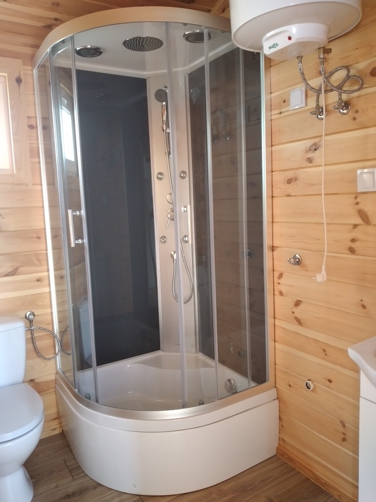 Kompletnie wyposażona łazienka (prysznic, umywalka, baterie, szafka umywalkowa, toaleta kompaktowa, terma, grzejnik)