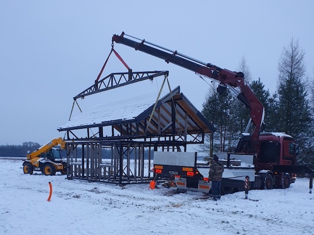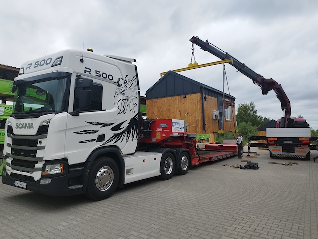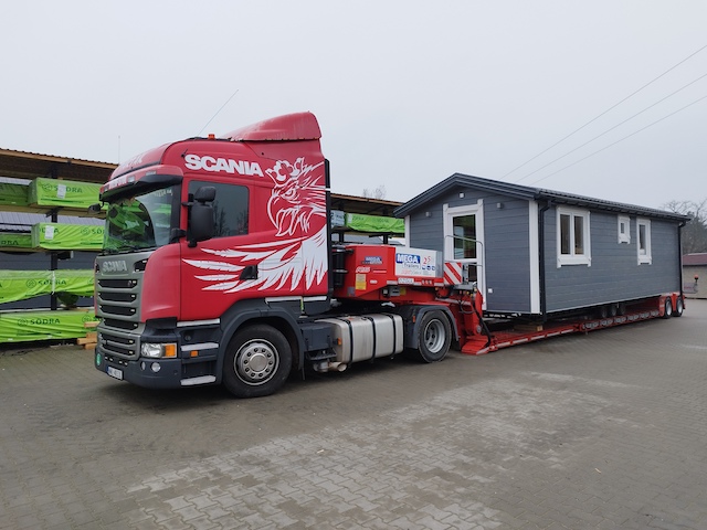 Specjalizujemy się w transporcie domków, pawilonów, kontenerów, materiałów budowlanych, pojazdów, konstrukcji wraz z załadunkiem i rozładunkiem.